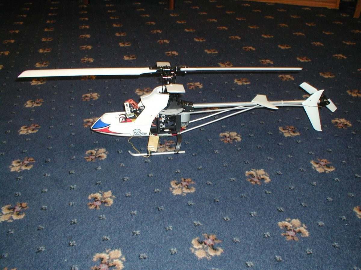 Electric helicopters had been developing at a pace but their main drawback was in the motor battery combinations. Whilst powerful motors were available they required large batteries to get any decent flight time thus requiring relatively large models. Small helicopters tended to be fixed pitch in order to be light and whilst some had been successful, Aisonic of the eighties to name but one; it required the use of plastic and lighter batteries before they became popular. However in the early 2000's a new technology was beginning to make a breakthrough; Li-on batteries (lithium-ion). These batteries provided a much higher capacity for a given weight and thus the potential of a smaller helicopter could be released. Here was the opening for a full function collective pitch helicopter powered by a Megax '400' size 'can' motor capable of aerobatics in standard form.