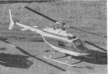 Germany at the Nürnberg Toy fair, Schuco-Hegi presents the modified Schlüter Cobra, Kavan presents on the Simprop stand the prototype JetRanger that was undergoing flying development with a view to being marketed later in the year. Apart from the landing legs it was a very near scale model and development was still being undertaken in order to keep the scale 'Bell' head. Similarly Du-Bro had finished development work on their 'torque reaction' helicopter which was being displayed on the Multiplex stand; it was ready for marketing but appears not yet to have been named.